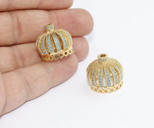 Malzeme : Pirinç Delik İç Boyutu : 19mm Taş Rengi : Turkuaz Renk : 22 ayar Parlak Altın Kaplama