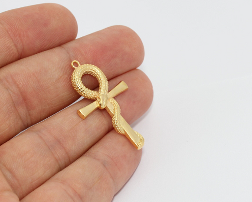 21x35mm Ham Pirinç Haç Kolye Ucu, Yılan Kolye Ucu, KDR173