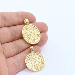 22 mm 24 Ayar Parlak Altın Dairesel Tılsımlar, Düzensiz Şekilli Büyük Halka Boncuklar, CHK112-4