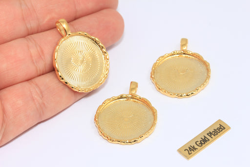 27x30mm - 24 Ayar Parlak Altın Kaplama Daire Charm, Baget MLS157