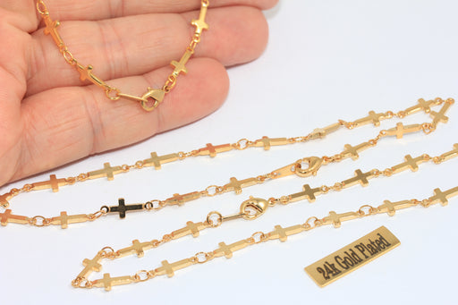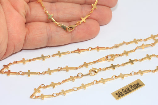 10" 24 Ayar Parlak Altın Haç Bileklik, Hazır Haç Bileklikler, MLS107
