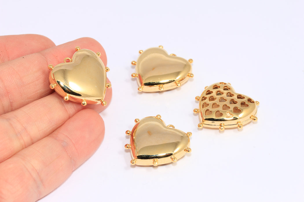 25x28mm 24 Ayar Parlak Altın Kalp Kabartmalı Tılsımlar, İçi Boş Kalp Kolye, CHK429-5
