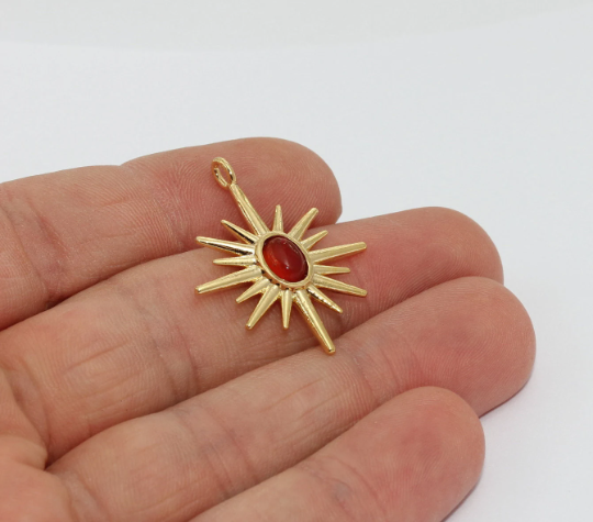 25x32mm 24 ayar Parlak Altın Kuzey Yıldızı Tılsımı, Turuncu, Altın BRT814