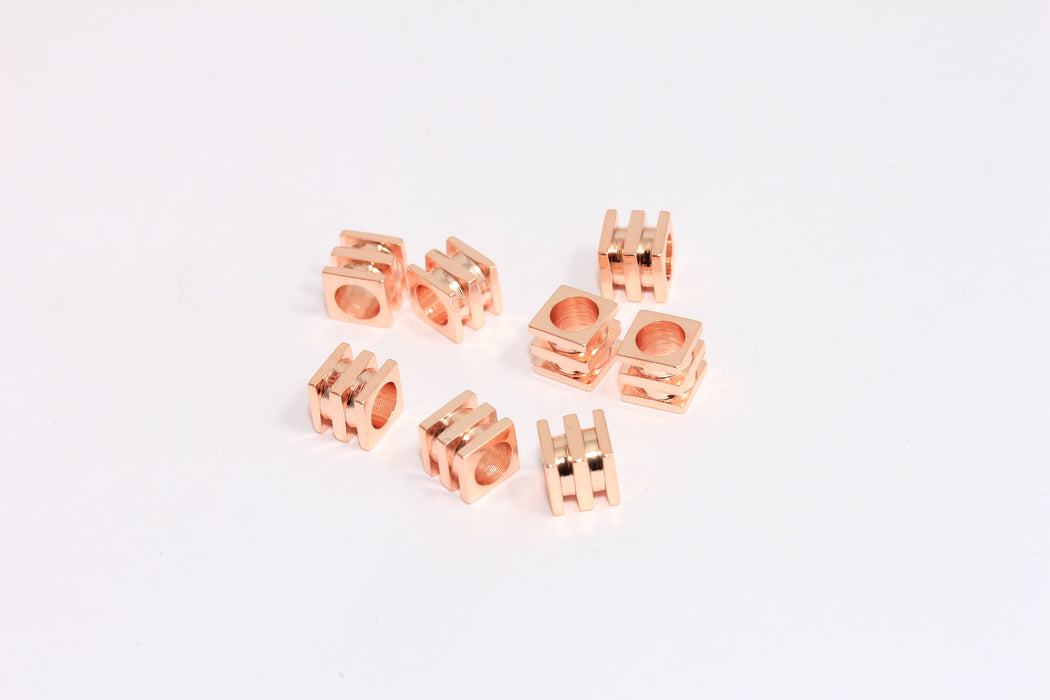 6 mm Gül Altın Kaplama Küp Boncuklar, Geometrik Boncuklar, Tüp Boncuklar, ROSE533