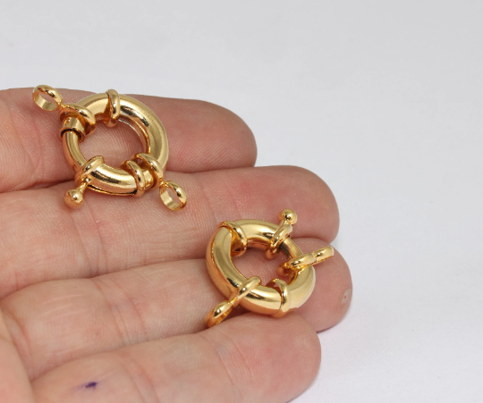 17 mm 24 ayar Parlak Altın Yaylı Tokalar, Yuvarlak Altın Tokalar, CHK401-1