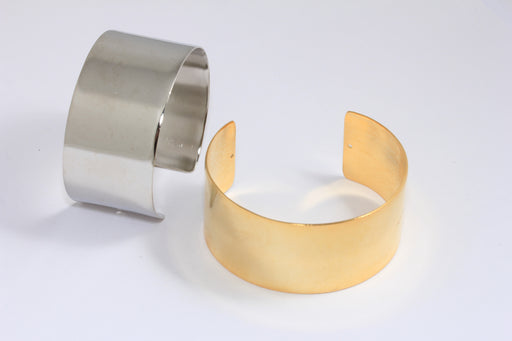 30 mm 24 Ayar Parlak Altın veya Rodyum Açık Bilezik, Geniş Düz Bilezik Manşeti, BXB199-5