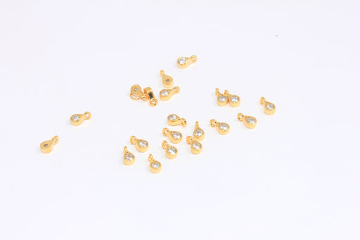 3x6,5 mm 24 Ayar Parlak Altın Damla Boncuklar, CZ Beyaz Taş Damla Tılsımlar, BXB433-2