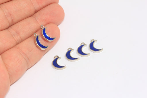8x11 mm Rodyum Kaplamalı Ay Charm, Mavi Mine Hilal Boncuklar, BXB141-4A