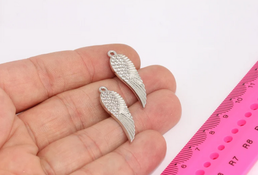 10x25 mm Rodyum Kaplama Kanatlar, Mikro Taşlı Kanat Takıları, Zirkon Taşlı Melek Kolye, Mikro Taşlı Melek, Gümüş Kaplama, MLS956