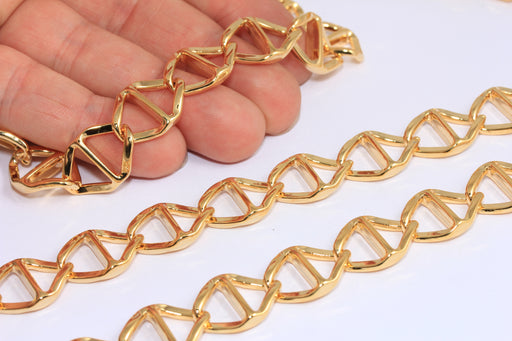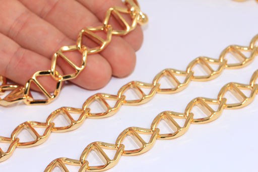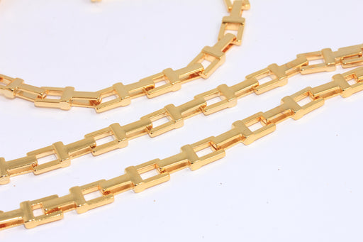 15 mm 24 Ayar Parlak Altın Bağlantı Zinciri, Kare Çubuk Bağlantı Zinciri, BXB272-5