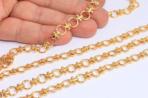 8 mm 24 Ayar Parlak Altın Bağlantı Zinciri, Oval Bağlantı Çubuk Zinciri, BXB346-3