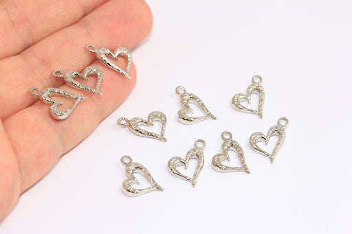 10x14 mm Rodyum Kaplama Kalp Kolye, Çekiçle İşlenmiş Anahatlı Kalp Tılsımı, CHK315-8