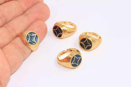 15-16 mm 24 Ayar Parlak Altın Kuzey Yıldızı Yüzükleri, Gece Mavisi Emaye Kutup Yıldızı Yüzük, CHK315-2