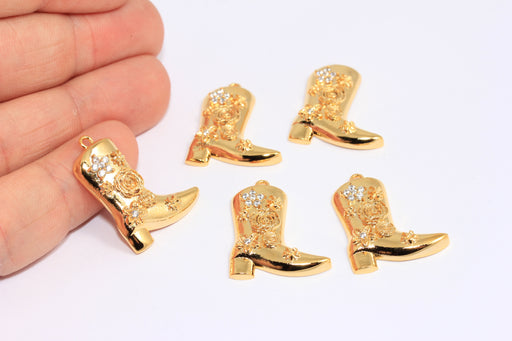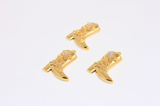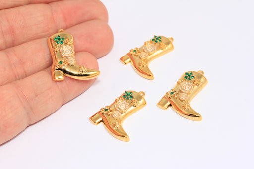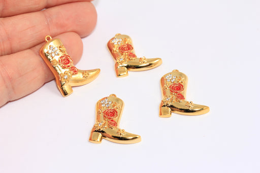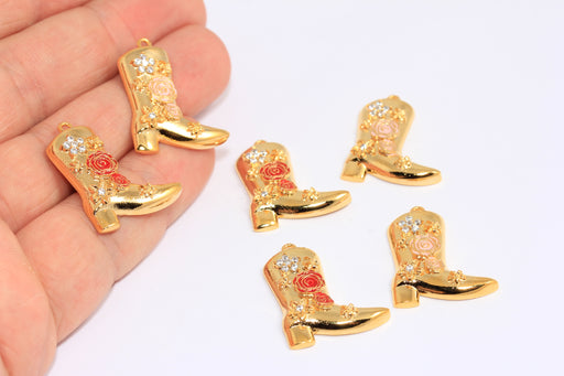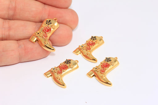 20x24 mm 24 Ayar Parlak Altın CZ Bot Takıları, Çiçekli Emaye Kovboy Botu, BXB6-2