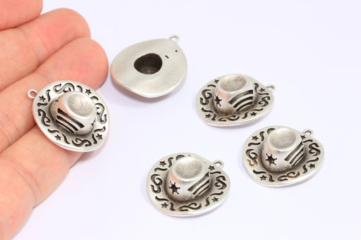 24x25 mm Antik Gümüş Kovboy Takıları, Gümüş Kovboy Şapka Takıları, ETS119