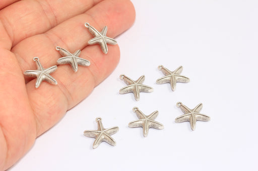 14 mm Antik Gümüş Deniz Yıldızı Boncukları, Deniz Yıldızı Takıları, Deniz Hayvanları, ETS111