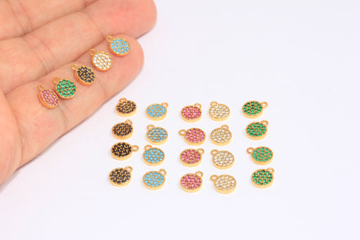 7x10mm 24 ayar Parlak Altın CZ Damla Takılar, Mikro Döşeme Nokta Takılar, İsteğe Bağlı Renk