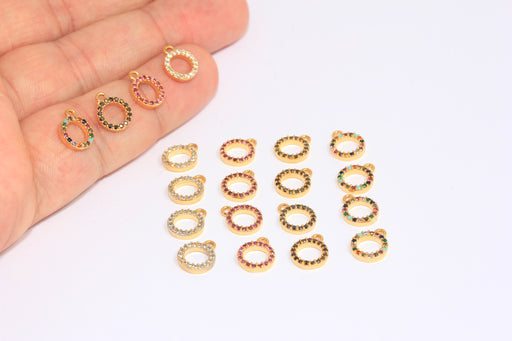 12 mm 24 ayar Parlak Altın CZ Damla Takılar, Mikro Döşeme Anahat Daire Boncuklar, Sonsuzluk Takıları