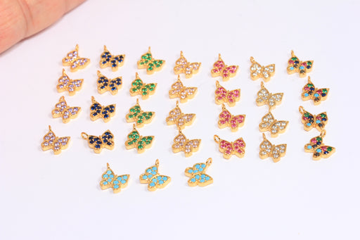 8x9mm 24 ayar Parlak Altın CZ Kelebek Boncukları, Mikro Döşeme Kelebek Takıları