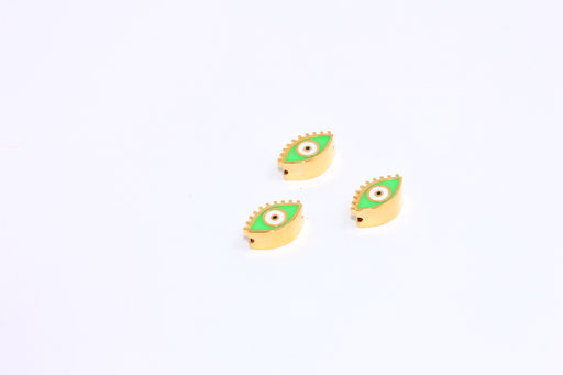 6x12mm 24 ayar Parlak Altın Nazar Boncuğu, Yeşil Mine Nazar Boncuğu, CHK415-7A