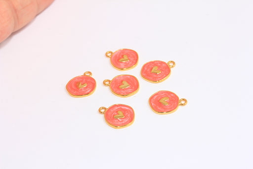 13,5 mm 24 ayar Parlak Altın Mine Kalp Charm, İnci Mercan Rengi Mine Kalp Madeni Boncuk, CHK415-2B