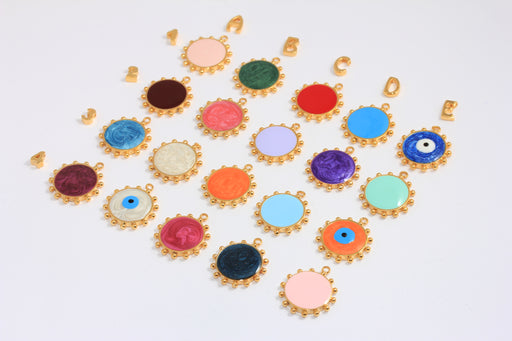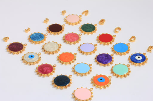 Malzeme : Pirinç Boyut : 22mm Renk : 24 ayar parlak altın kaplama Emaye Rengi: İsteğe bağlı Miktar : İsteğe bağlı