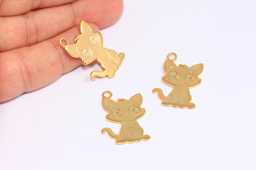 17x24 mm 24 Ayar Parlak Altın Kedi Kolye, Sevimli Kedi Takıları, ETS168