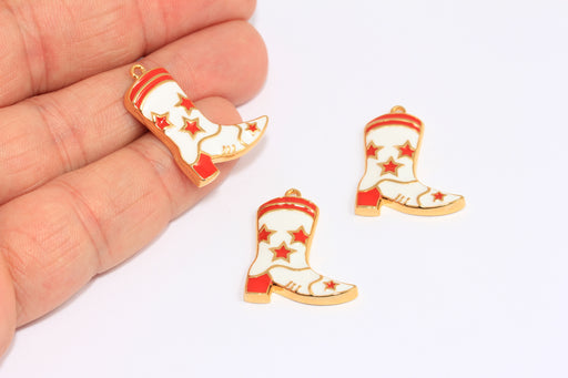 20x24 mm 24 Ayar Parlak Altın Çizme Tılsımı, Kırmızı Emaye Kovboy Çizmesi Kolye Ucu, ETS140-1