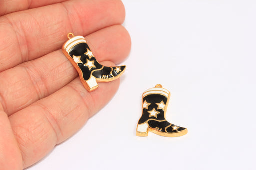 20x24 mm 24 Ayar Parlak Altın Çizme Tılsımı, Siyah Emaye Kovboy Çizmesi Kolye Ucu, ETS140-2