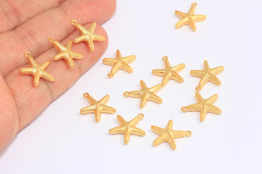14 mm 24 Ayar Mat Altın Deniz Yıldızı Tılsımları, Sevimli Deniz Yıldızı Boncukları, BXB300-1