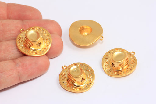24x25mm 24 ayar Mat Altın Kovboy Takıları, Altın Kovboy Şapka Takıları, BXB300-5