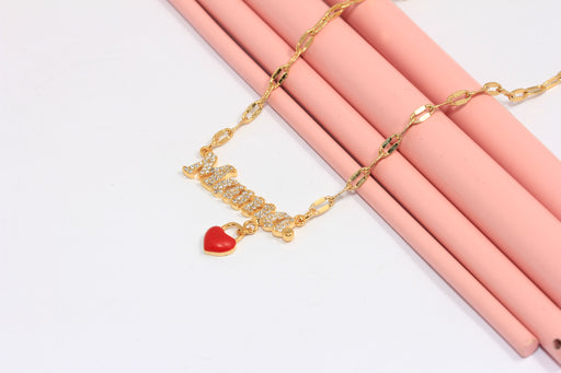 17'' 24 Ayar Parlak Altın CZ Anne Kolyesi, Mikro Döşeme Anne Kolyesi,