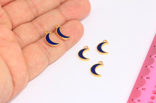 8x14 mm 24 Ayar Parlak Altın Ay Takıları, Lacivert Emaye Hilal Boncuklar, BXB335-2