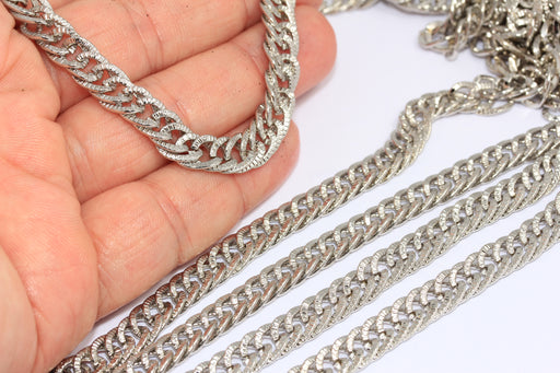 7,5 mm Rodyum Kaplamalı Bordür Zinciri, Yüzlü Bordür Zinciri, BXB196-6