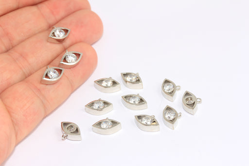 7x12 mm Rodyum Kaplamalı Zirkon Göz Tılsımı, Beyaz Taşlı Göz Boncukları, BXB207-6