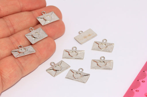 9x16mm Rodyum Kaplama Zarf Harf Takıları, Kalpli Zarf Kolye, CHK102-2