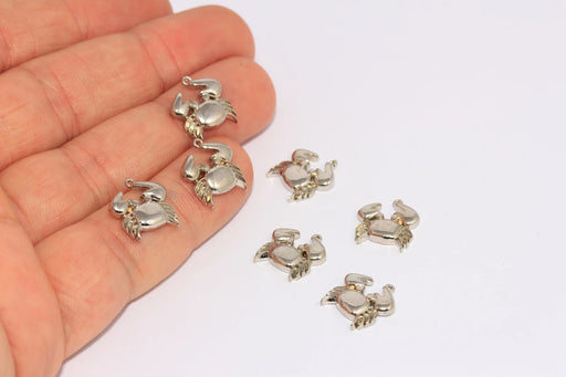 13x14 mm Rodyum Kaplama Yengeç Takıları, Yengeç Boncukları, Deniz Hayvanları, CHK102-4