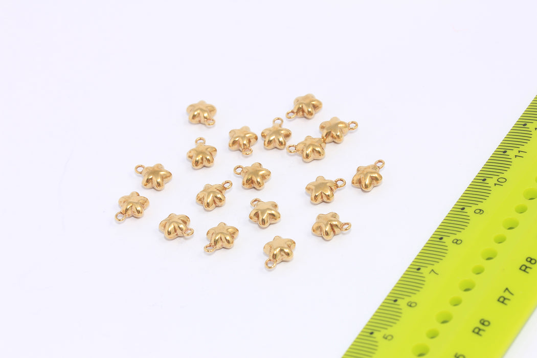 7,5x9mm Ham Pirinç Yıldız Boncuklar, Mini Kabarık Yıldız Takılar, CHK57-5