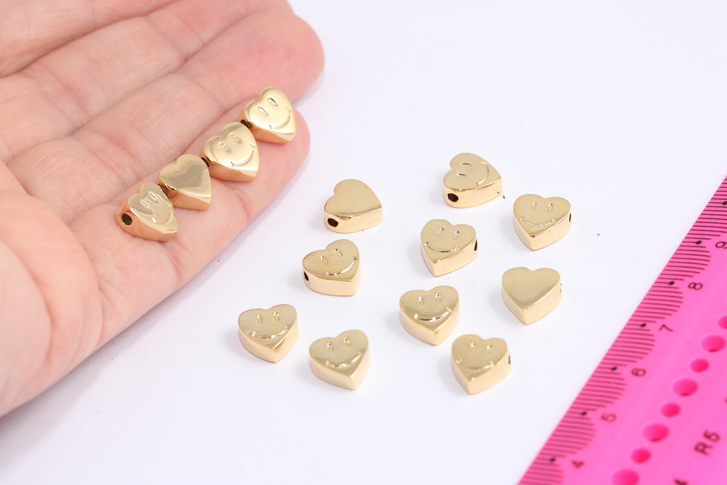 9 mm 24 Ayar Parlak Altın Kalp Takılar, Gülümseme Kayar Bilezik Boncukları, KDR167