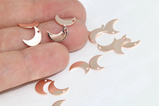 7x10mm Gül Altın Ay Takıları, Yarım Ay Kolye, ROSE174