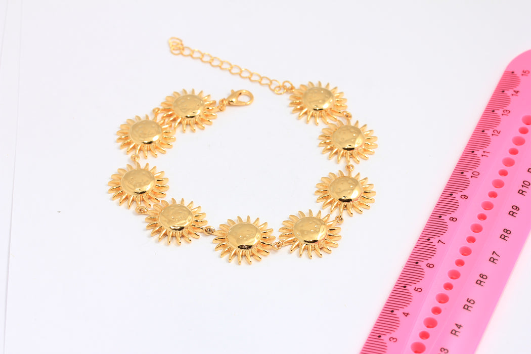 24 Ayar Parlak Altın Güneş Bilekliği, Zarif Bilezikler, Çekiçle İşlenmiş Güneş Bilezikleri, Birleşen Güneşler, Altın Kaplama Bulgular, ROSE275-2