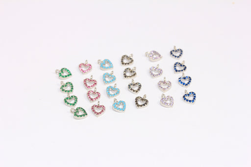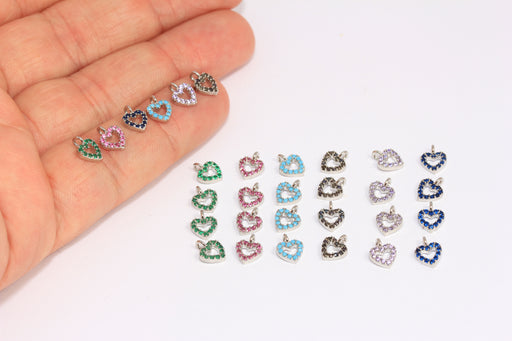 6 mm Rodyum Kaplama Kalp Takılar, Mikro Döşeme Beyaz Taş Kalp Boncukları, MTE148
