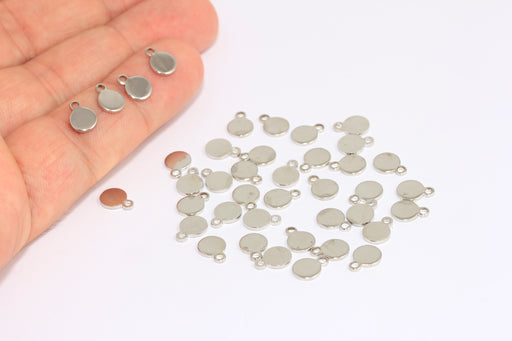 6 mm Rodyum Kaplamalı Madeni Para Takıları, Damgalama Disk Boncukları, BXB6-7