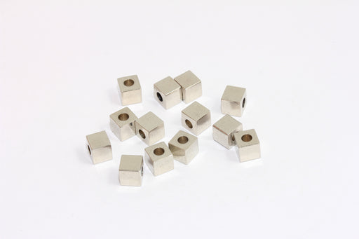 6 mm Rodyum Kaplamalı Küp Boncuklar, Küp Bilezik Takıları, BRT531