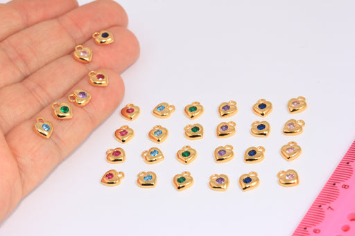 7,5x9mm 24 ayar Parlak Altın CZ Kalp Takılar, Mini Mikro Taşlı Kalp Boncuklar, CHK466-6