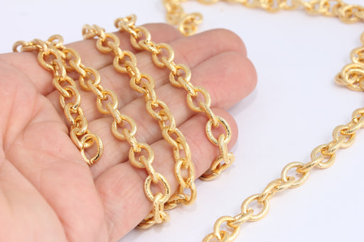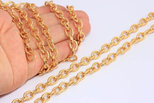 7,5x12mm 24 ayar Parlak Altın Bağlantı Zinciri, Bükülmüş Oval Zincir, CHK127-3