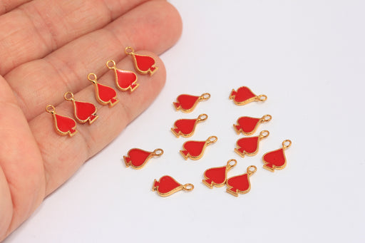 Malzeme : Pirinç Boyut : 7,5x10mm Renk : 24 ayar Parlak Altın Kaplama Mine Rengi: Kırmızı Miktar : İsteğe bağlı
