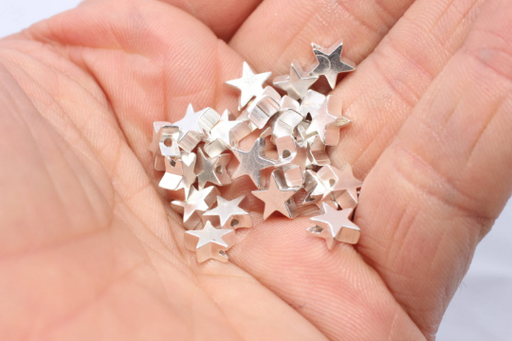 7,5 mm Gümüş Kaplama Yıldız Boncuklar, Yıldız Takılar, Orta Delik Yıldız, CR134
