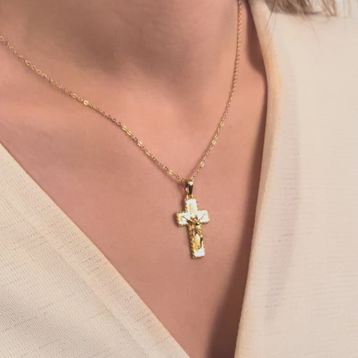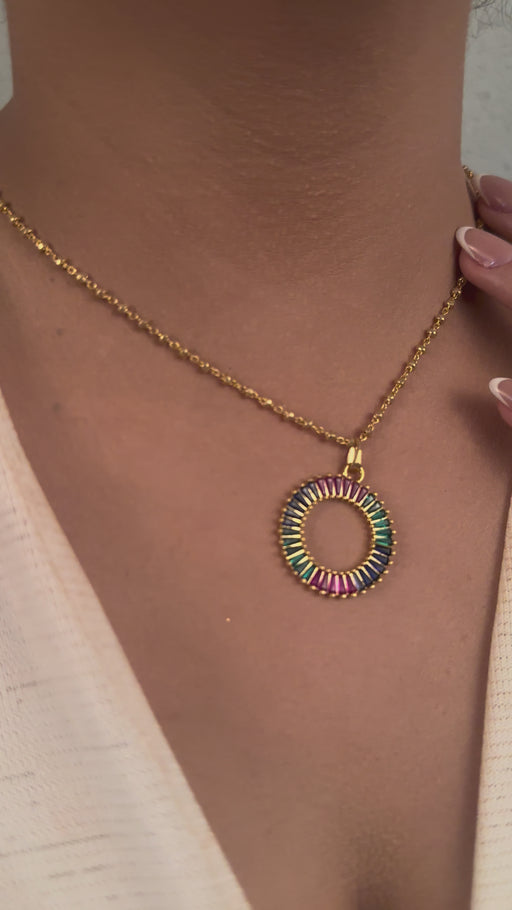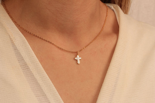 • 17" 24 Ayar Parlak Altın Kabuk Kolye, Kristalli Kolye, CHK691