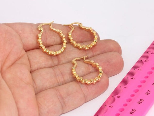21 mm 24 Ayar Parlak Altın Halka Küpeler, Yuvarlak Halka Küpeler, XP262